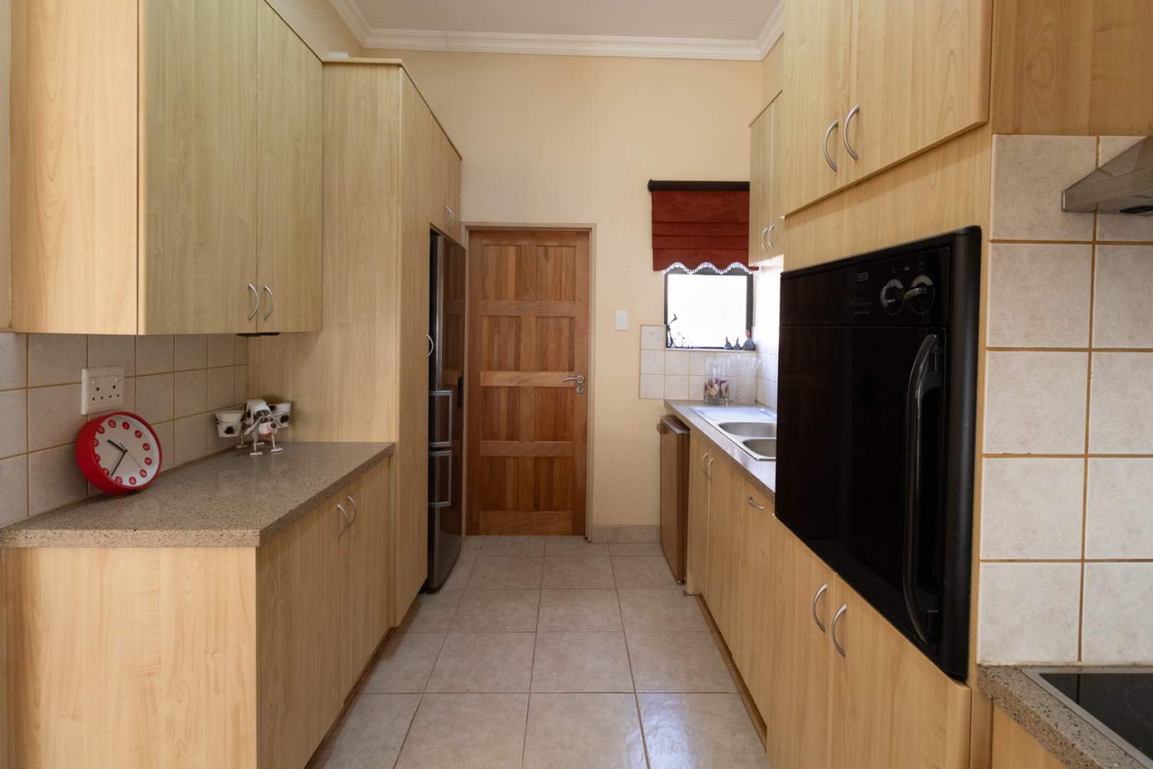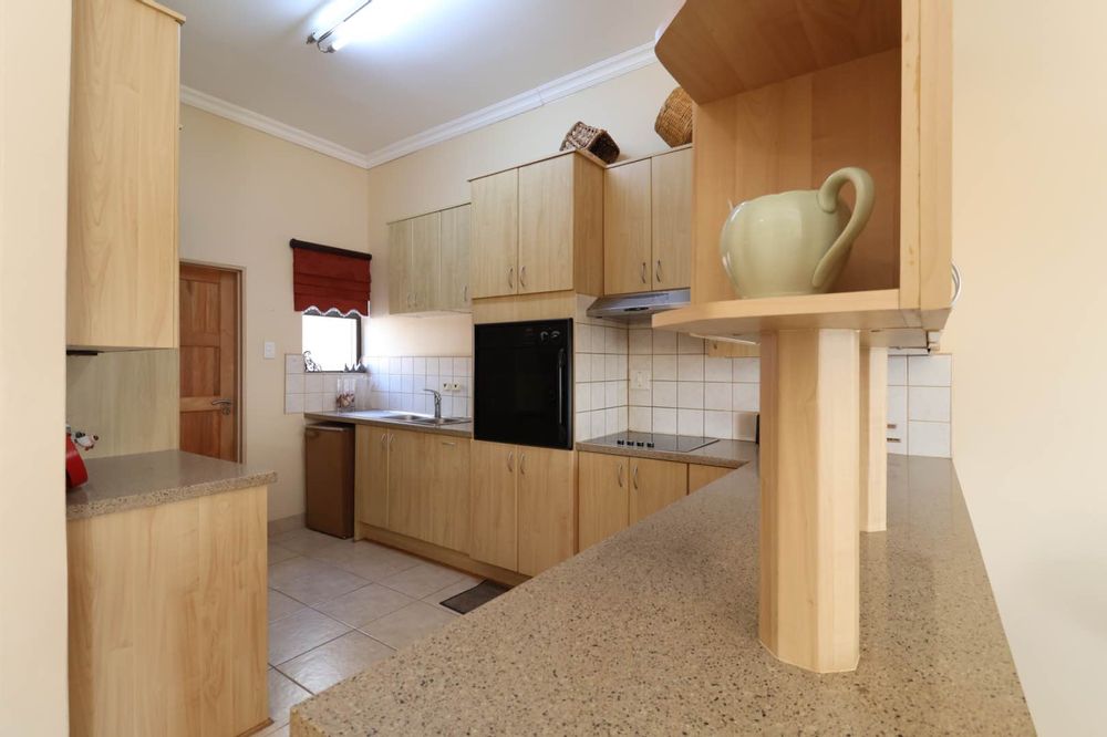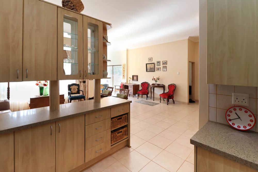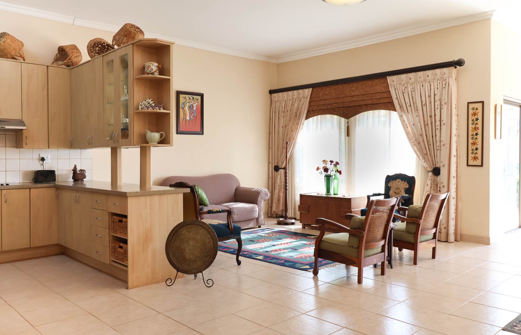 The townhouse boasts an open-plan layout that includes the lounge, dining area and sun room. The kitchen is compact and well designed to ensure ease of movement between the stove, fridge and preparation area.