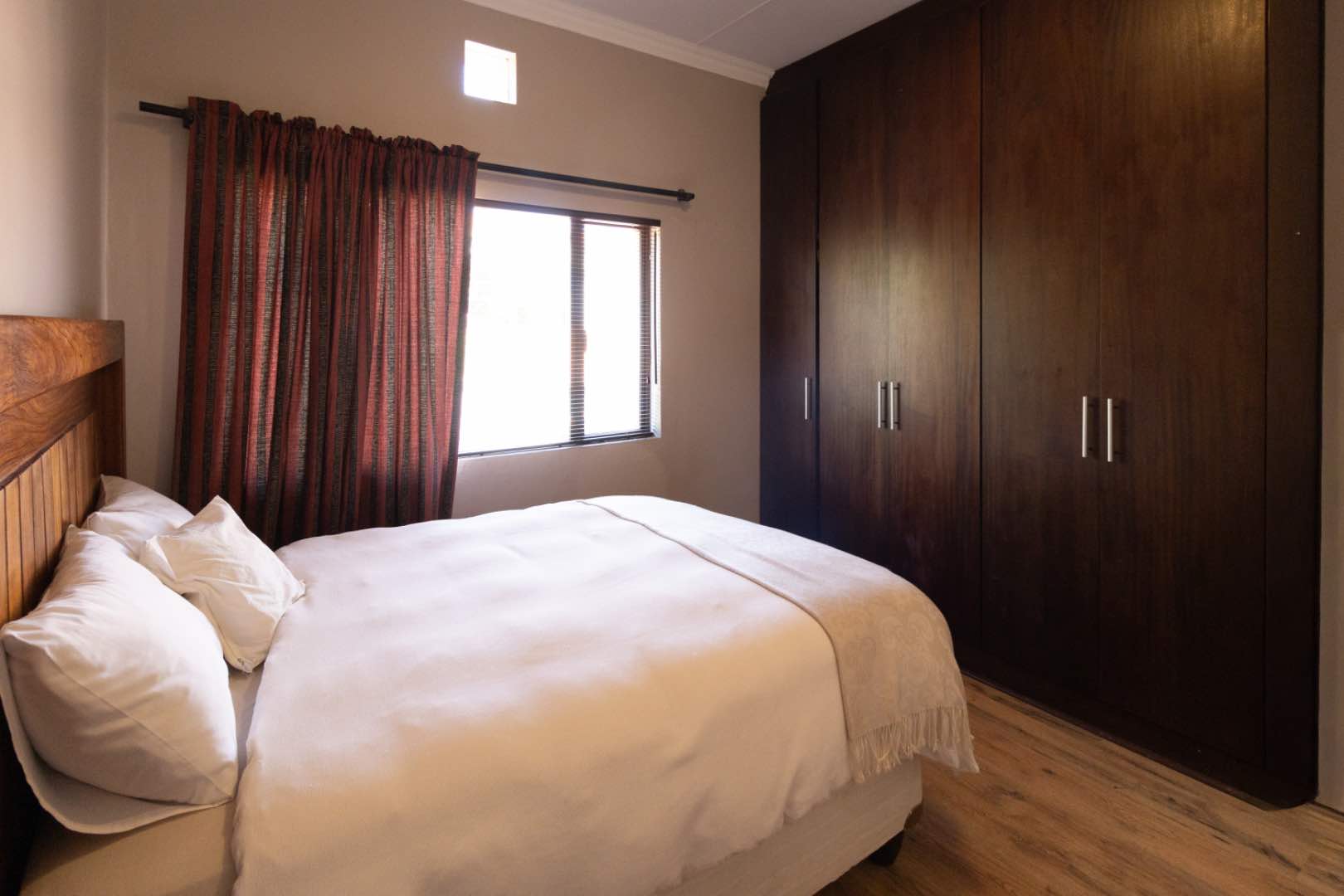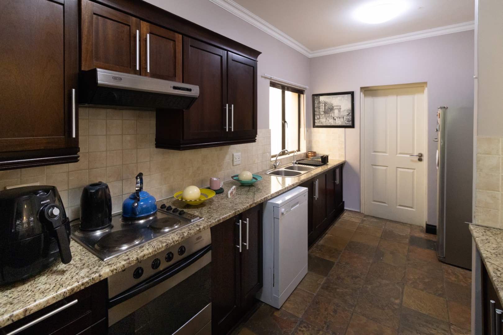The townhouse boasts high quality finishes that have stood the test of time. Elegant mahogany veneer kitchen cabinets and built-in cupboards in the bedrooms are complimented by natural stone flooring in living areas, kitchen and bathrooms; while laminate flooring in the bedrooms provides a contemporary touch.